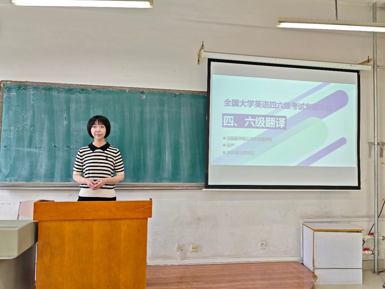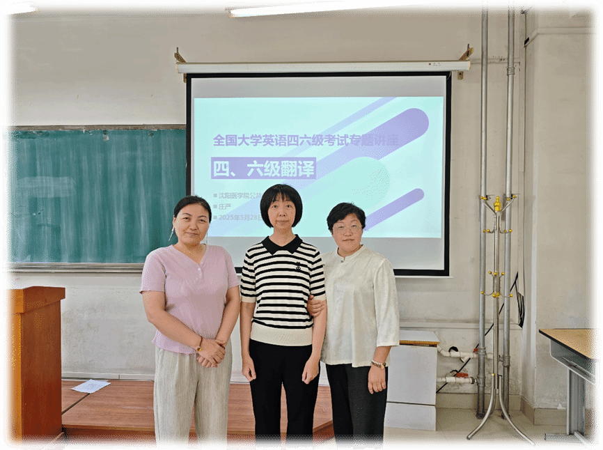 研究生英语教学党支部教师在博学楼A203教室为第一临床医学院学生进行了大学英语四六级辅导系列讲座。本场讲座由支部党员教师庄严教授主讲,聚焦大学英语四六级翻译的备考策略,党支部书记喻兰和宣传委员李利参与了讲座。