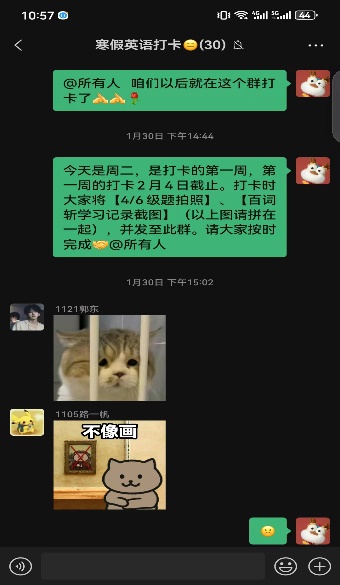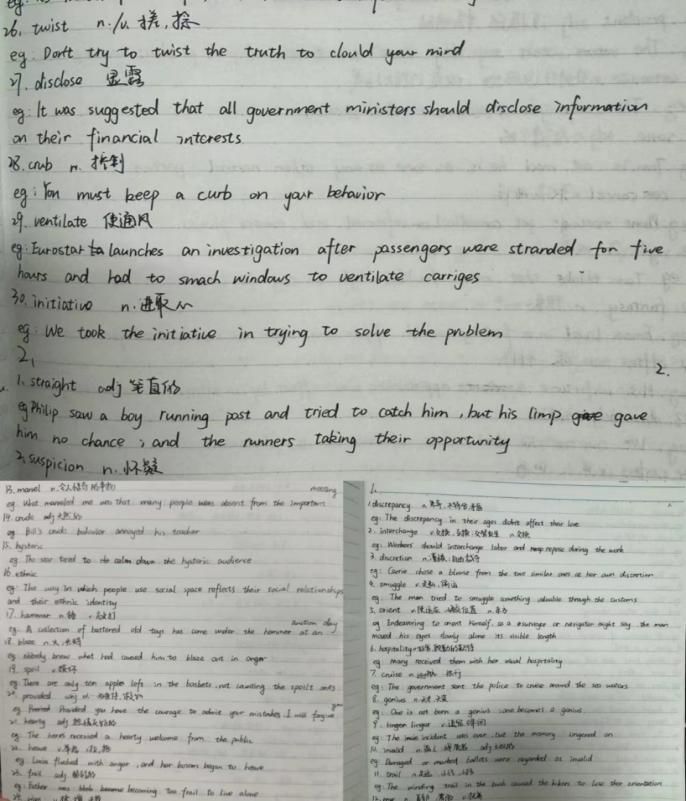 另一方面,要求学生假期共手写30天词汇,每天共30个单词,每个单词要写出至少两个含义及衍生词。假期共完成四级词汇共计900词的练习和背诵,基本涵盖了全部四级核心词汇。