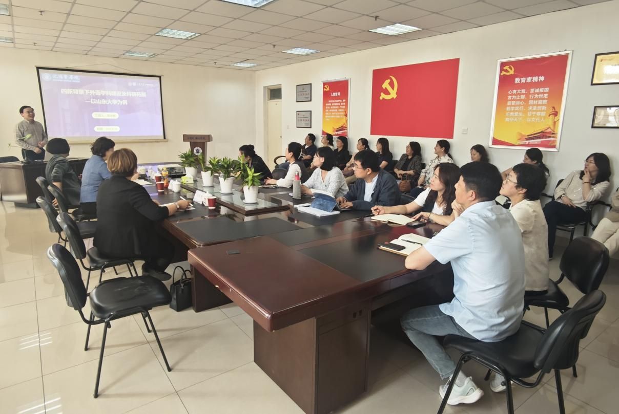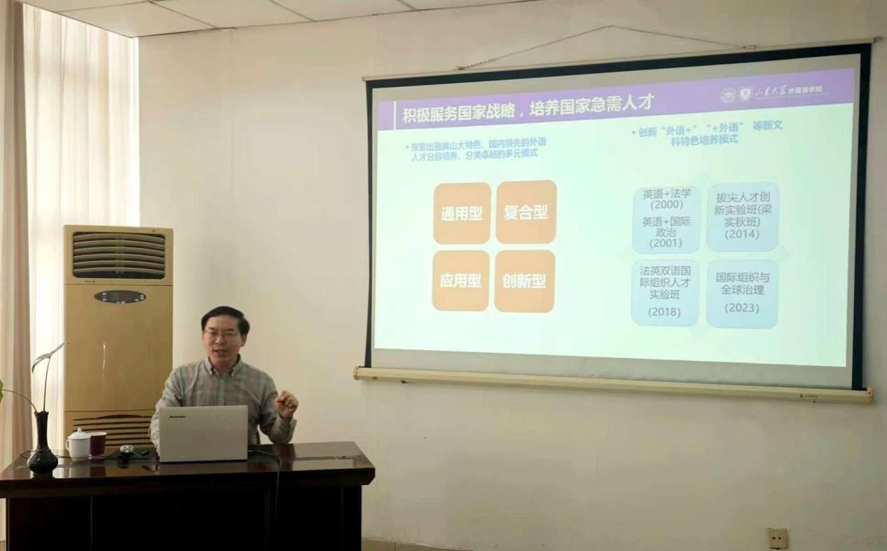 承办的第十六期学术大家讲坛于9月24日下午在博学楼A601会议室召开。本期讲坛邀请山东大学外国语学院副院长苏永刚教授主讲,主题为“四新建设背景下外语学科建设及科研拓展”。苏永刚教授担任人文医学、应用语言学、心理健康护理学博士生导师,兼任世界翻译教育联盟医学翻译与教学研究会副会长、中国翻译协会医学语言服务专委会副主委、山东省大学外语教育专委会会长等职。