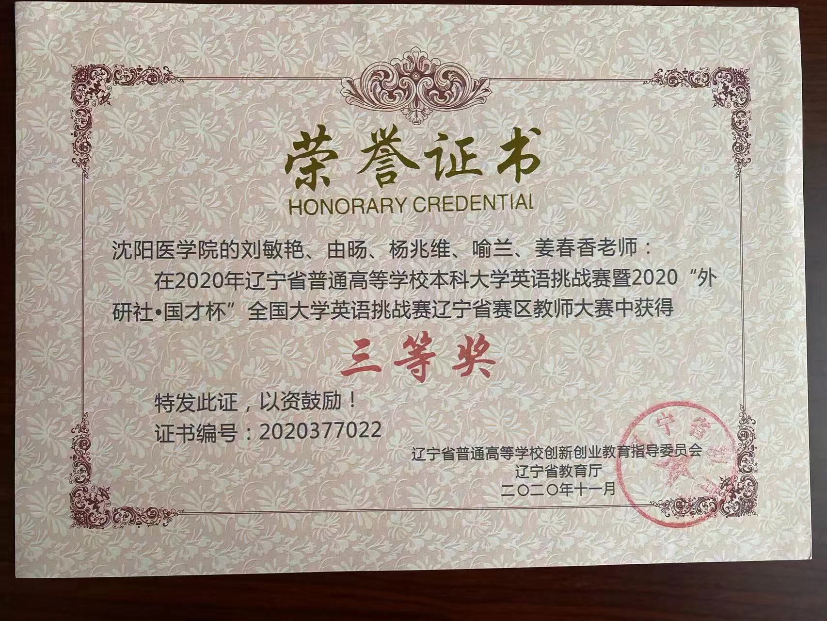 近5年来,教研室教师承担省级教改课题项、市级科研项目5项、校级科研项目2项,2020年第三教研室教师团队获得外研社“教学之星”大赛全国复赛一等奖,同年获得辽宁省普通高等学校本科大学英语挑战赛教师组三等奖。2023年获得教学之星大赛全国大赛一等奖一项,辽宁省复赛特等奖一项。指导学生获得省辽宁省普通高等学校本科大学英语挑战赛阅读大赛、写作大赛,词达人、学术英语大赛等获奖20余项。