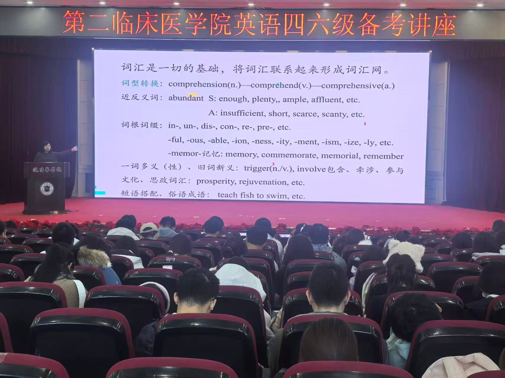 本科英语教学党支部组织委员李妍老师为第二临床学院200余名学生进行了一场英语四、六级考试答疑讲座。