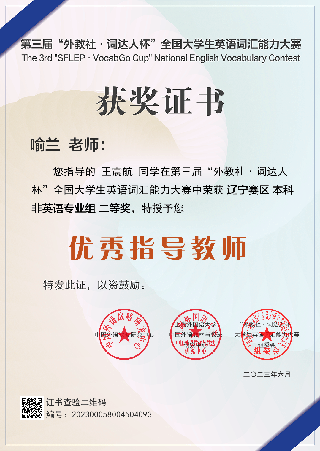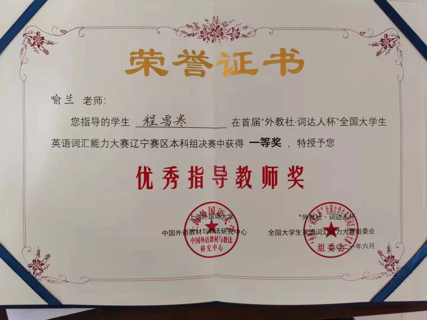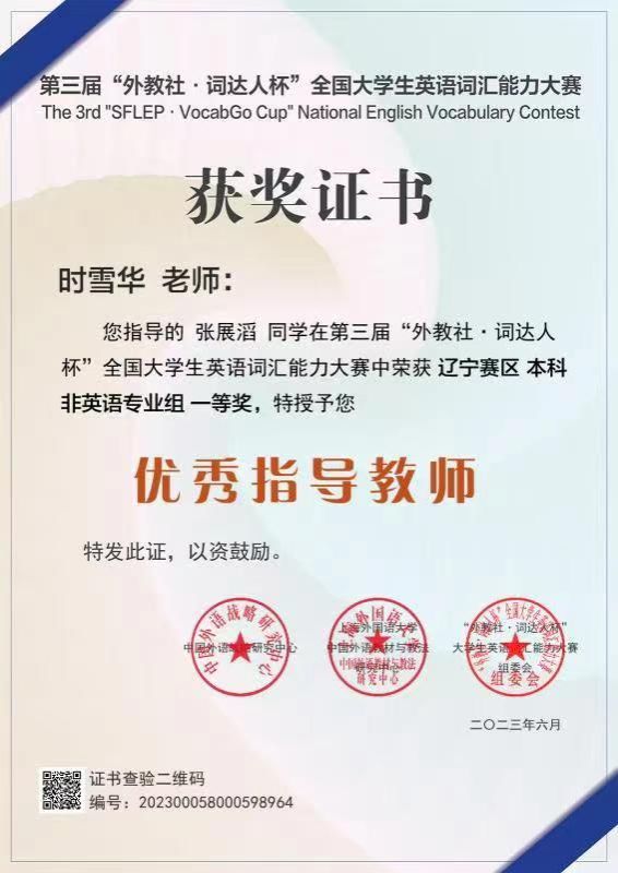 近5年来,教研室教师承担省级教改课题项、市级科研项目5项、校级科研项目2项,2020年第三教研室教师团队获得外研社“教学之星”大赛全国复赛一等奖,同年获得辽宁省普通高等学校本科大学英语挑战赛教师组三等奖。2023年获得教学之星大赛全国大赛一等奖一项,辽宁省复赛特等奖一项。指导学生获得省辽宁省普通高等学校本科大学英语挑战赛阅读大赛、写作大赛,词达人、学术英语大赛等获奖20余项。