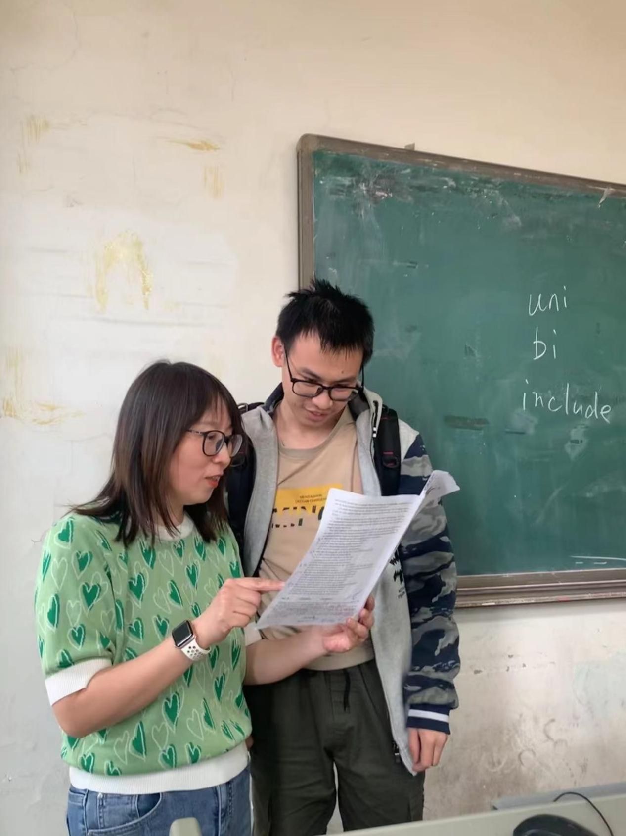 课堂上,由旸老师也喜欢走到学生中间,和他们近距离交流,看看学生的学习状态,发现学生学习上遇到的困难,并第一时间给予帮助和指导。课后,在讲台上,在办公桌前,在微信上,在班级群里,都有学生随时随地提出的问题和由老师耐心指导的身影。有的学生在毕业前都要特意找到由老师,跟她报告考研的喜讯,跟她留下毕业前难忘的合影。